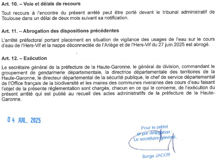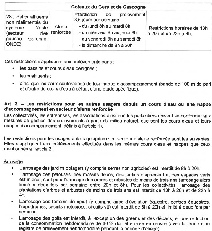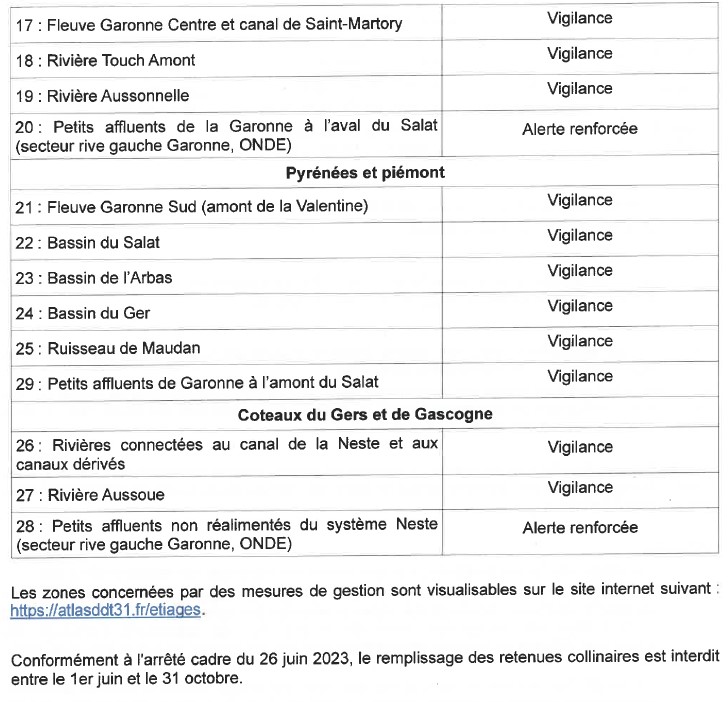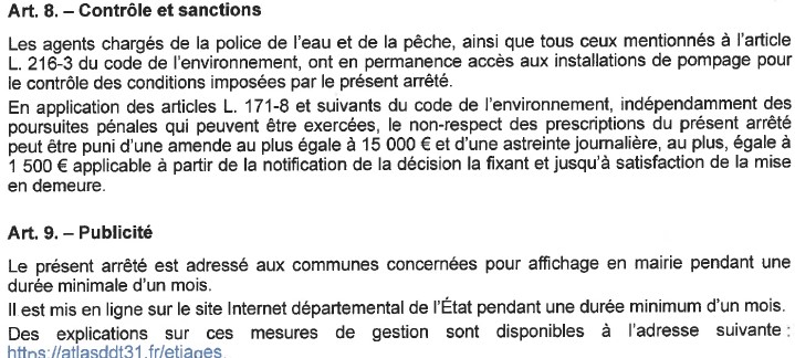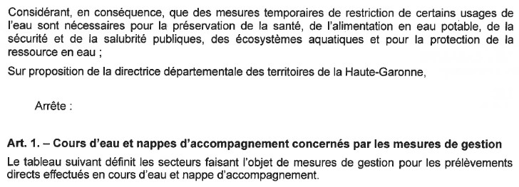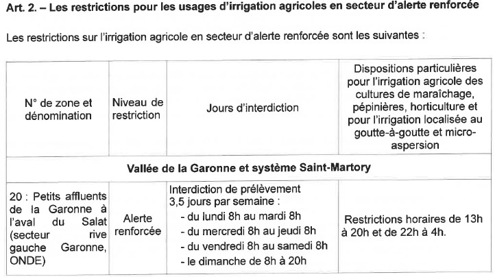 Arrêté portant mesures de gestion des prélèvements d'eau pour un usage d'irrigation agricole dans le département de la Haute-Garonne
